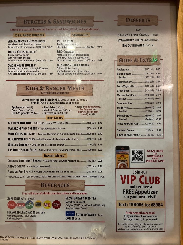 Texas Roadhouse Wilmington Menu (Update 2025)
